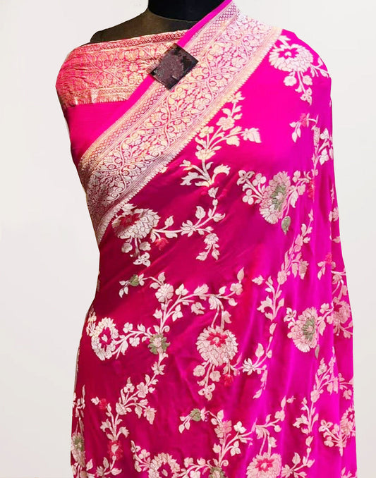 Fuchsia Pure Katan Silk Saree Featuring Weaved Floral Buta
