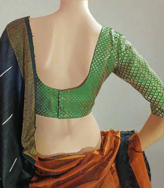 Green Brocade Elbow Sleeve Length Blouse