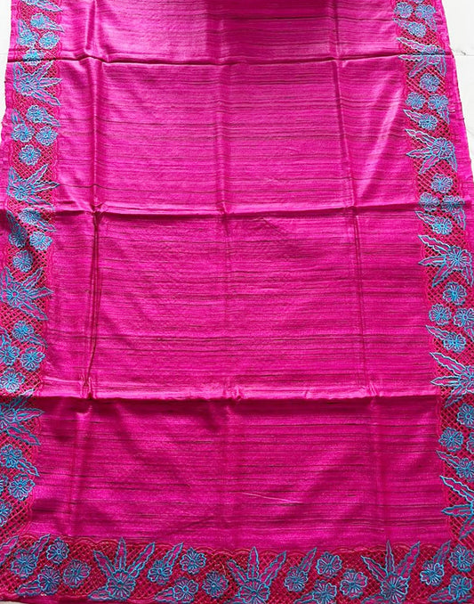 Magenta Hand Cutwork Tussar Ghicha Silk Saree