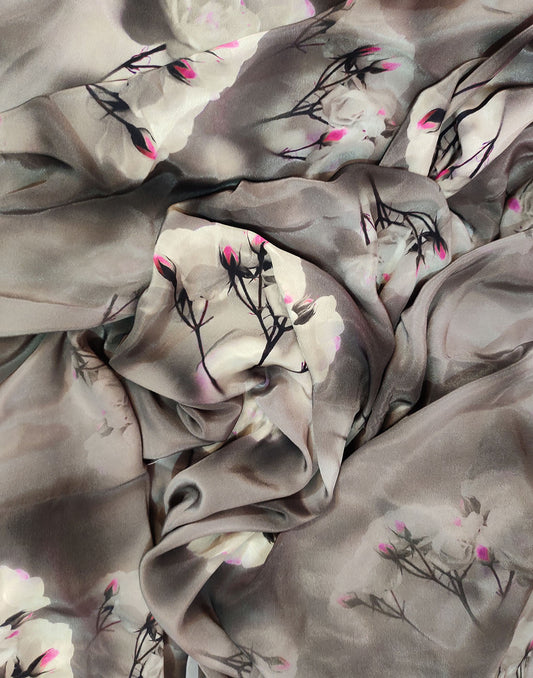 Beige Madhubani Hand Painted Natural Crepe Saree