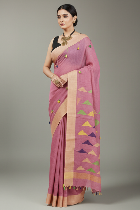 Pasta Green Tussar Munga Embroidered Silk Saree