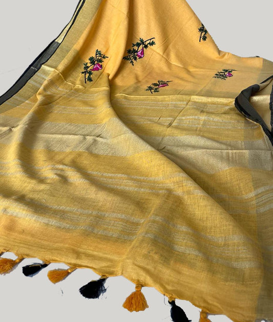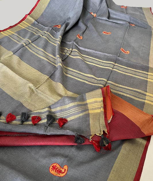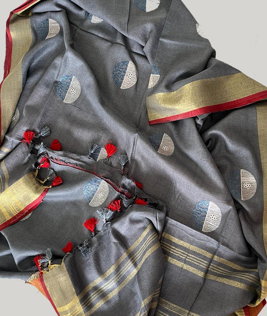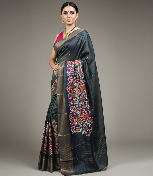 Pasta Green Tussar Munga Embroidered Silk Saree