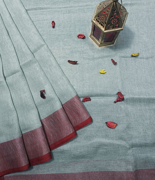 Maroon and Green Korean tussar ghicha pallu saree with staple body