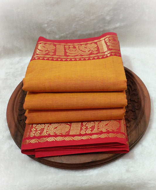 Orange and Pink Korean tussar ghicha saree pallu with staple body