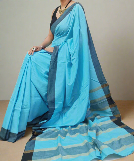 Firozi Staple Body Saree with Ghicha Silk Pallu