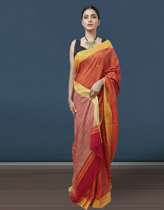 Light Orange Buta Handloom Tussar Ghicha Silk Saree