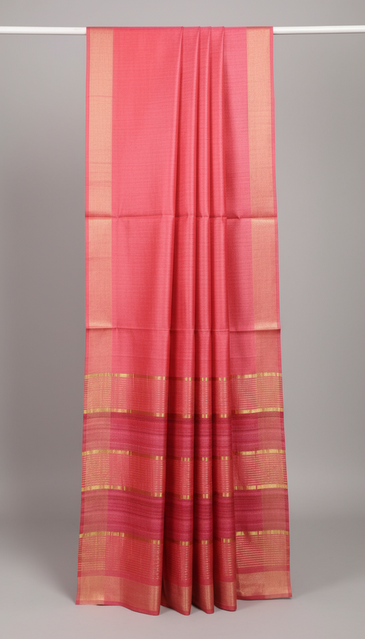 Red Zari Border Handloon Tussar Ghicha Silk Saree