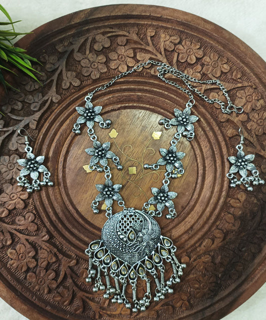 Lotus Oxidized Necklace Set