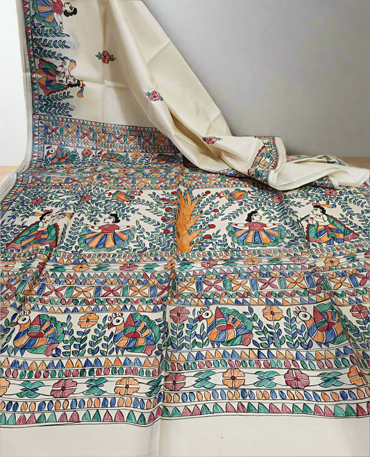 Saheli Madhubani Hand Painted Desi Tussar Silk Saree