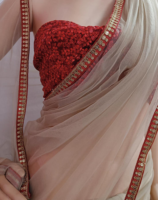 Off White Lace Border Net Saree