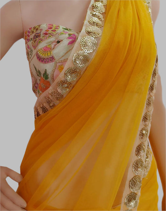 Orange Lace Border Net Saree