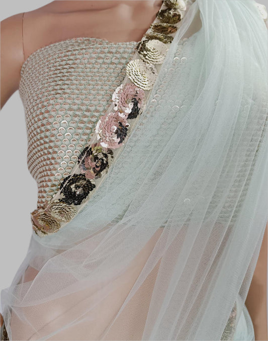 Powder Blue Lace Border Net Saree