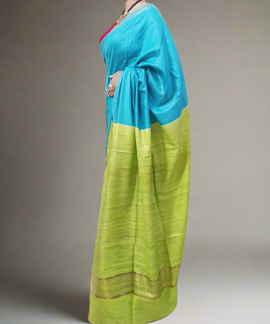 Blue Desi Tussar Silk Saree