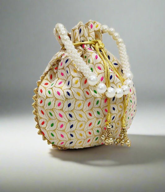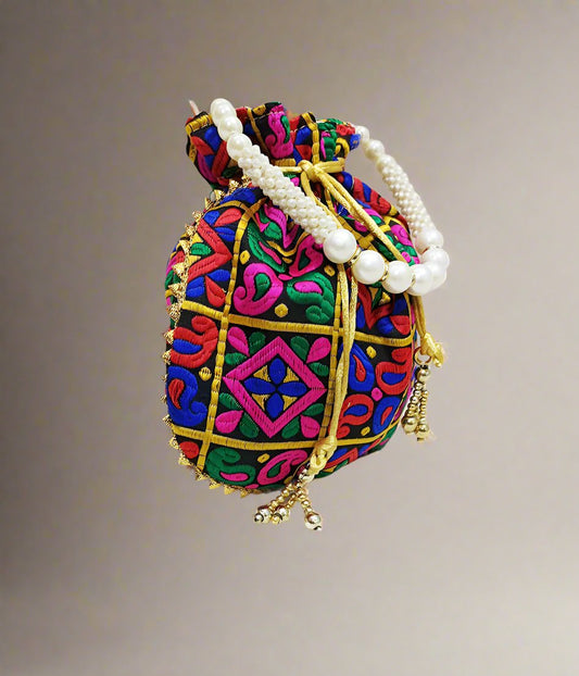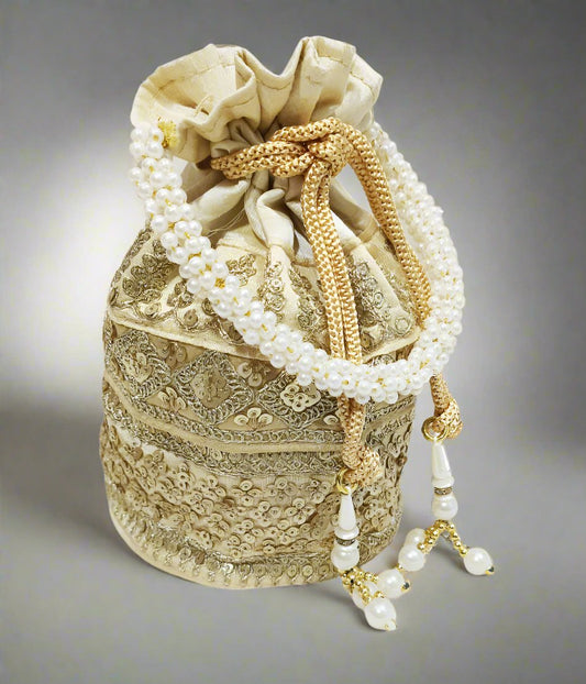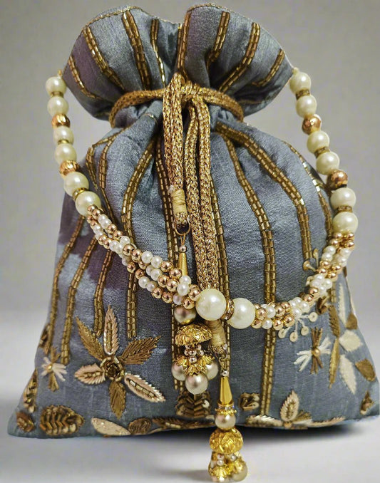 India has used potli bags since the beginning of time. These lovely bags have endured through the ages and are today acknowledged as a fashion accessory for all people, regardless of age or gender. In essence, potli bags are created from a luxurious fabric, preferably satin, velvet, or silk. The fabric is then decorated and fitted with a drawstring so that the bag may be opened and closed. These potli bags used to look straightforward. With these traditional bags becoming more and more popular, they are now embellished with Banaras or Kutch work, pearls, mirrors, beads, sequins, stones, and tassels attached to the drawstrings.