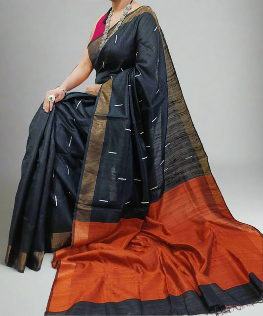 Black and Bronze Tussar Raw Silk Saree
