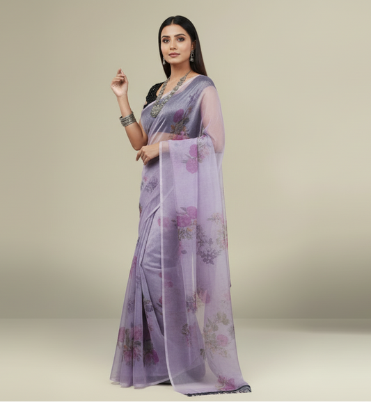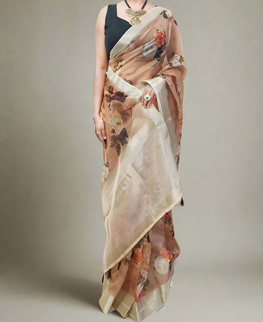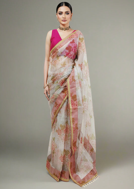 Baby Pink Banarasi Pure Khaddi Chiffon Saree