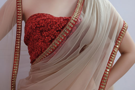 Off White Lace Border Net Saree