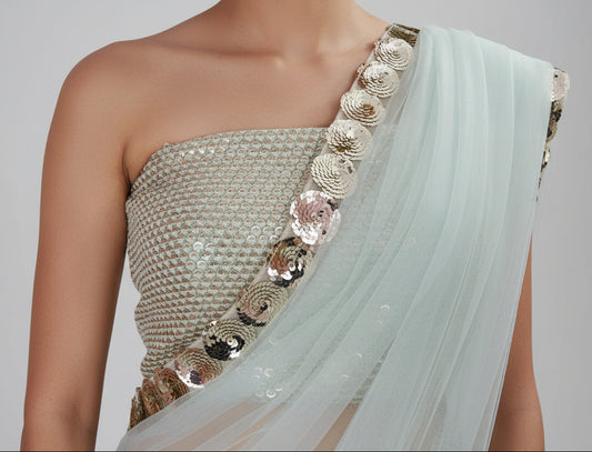 Powder Blue Lace Border Net Saree