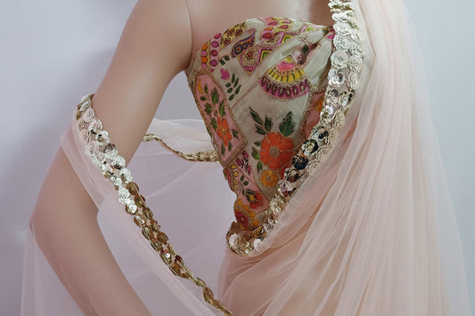 Powder Pink Lace Border Net Saree