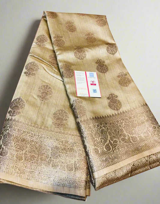 Grey Pure Katan Silk Saree Featuring Weaved Buta