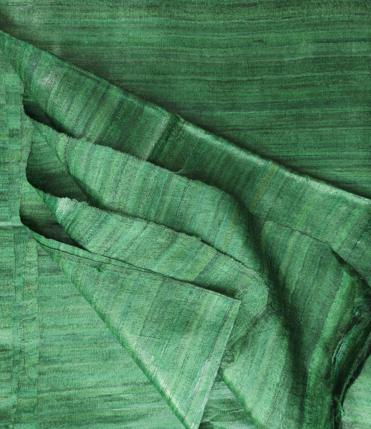 Dark Green Handloom Tussar Ghicha Silk Saree