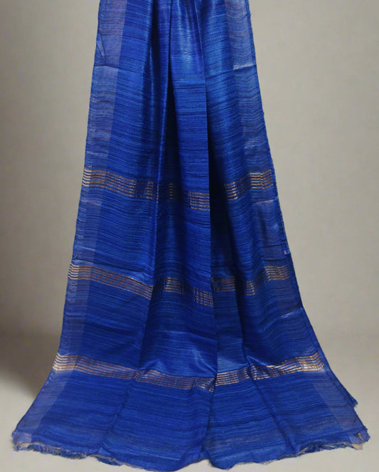 Cobalt Blue Zari Border Handloom Tussar Ghicha Silk Saree