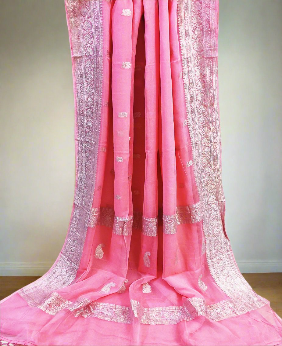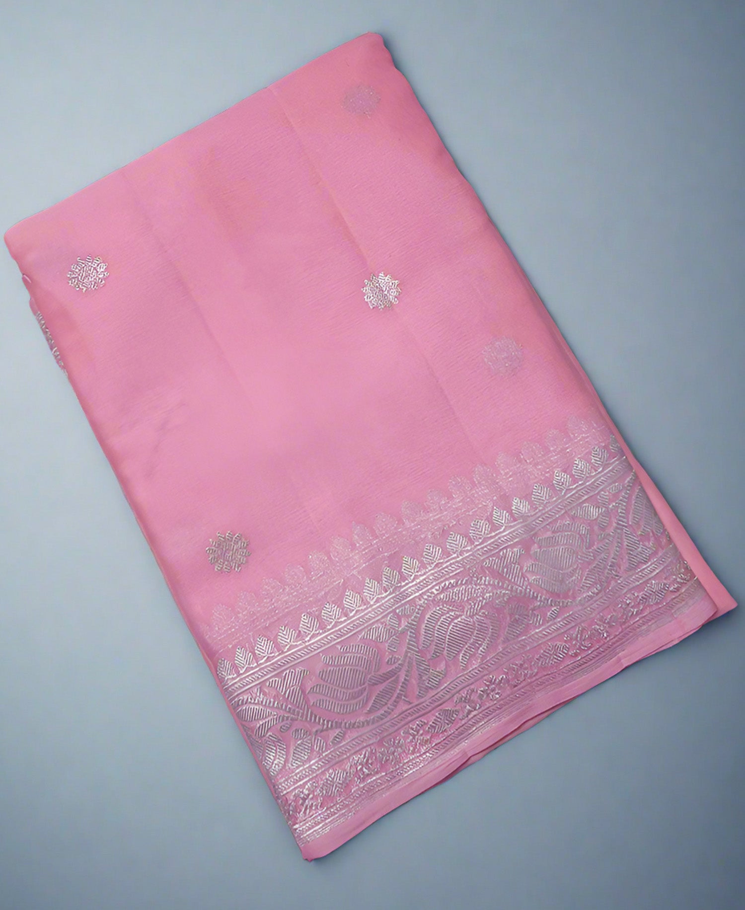 Baby Pink Banarasi Pure Khaddi Chiffon Saree