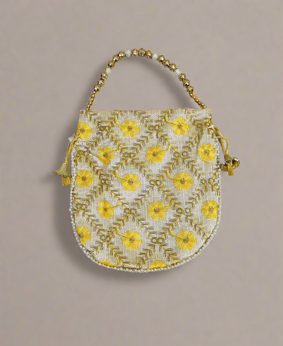 Barfi-Pattern Off-White Potli with Yellow Embroidery
