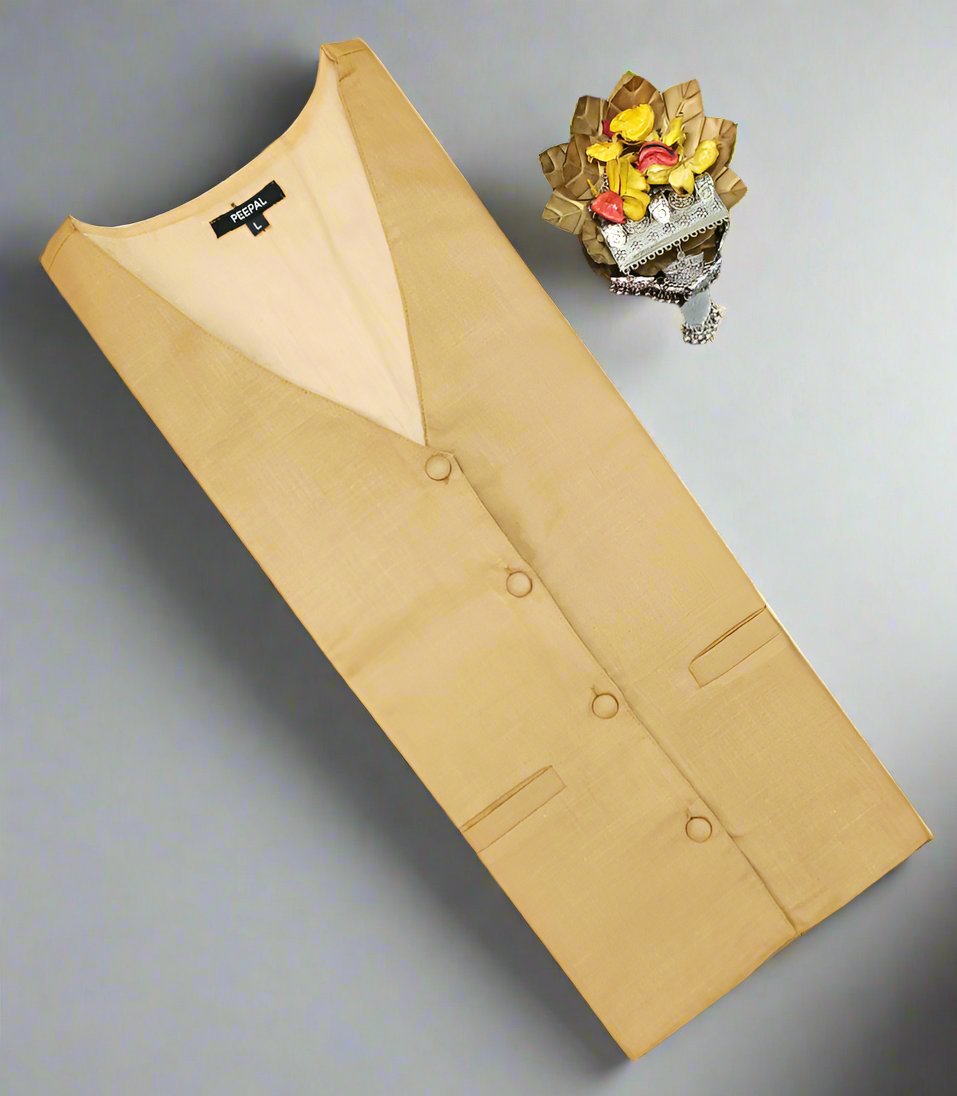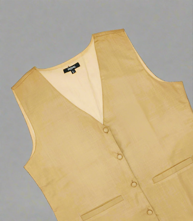 Discover timeless elegance with our women's waistcoat, a versatile piece that effortlessly elevates your wardrobe. Crafted with meticulous attention to detail, this waistcoat boasts a sleek and tailored silhouette, perfect for layering over blouses or dresses. Its neutral tone complements any outfit, while the high-quality cotton fabric ensures comfort and durability. Whether worn as a standalone statement piece or paired with a women's jacket for added sophistication, this waistcoat exudes sophistication and refinement. Embrace understated chic with this essential addition to your wardrobe, offering both style and versatility for any occasion.