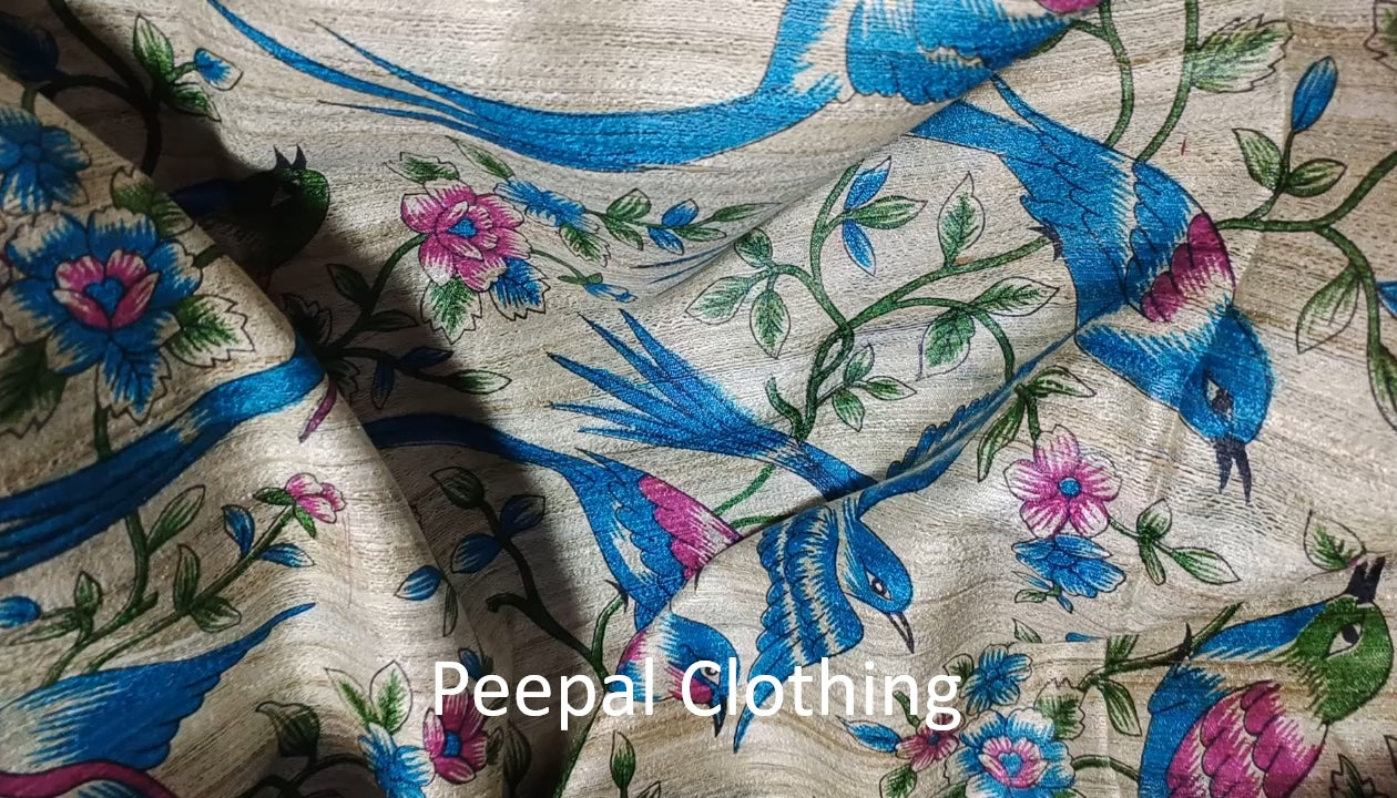 Birds Printed Tussar Ghicha Silk Saree