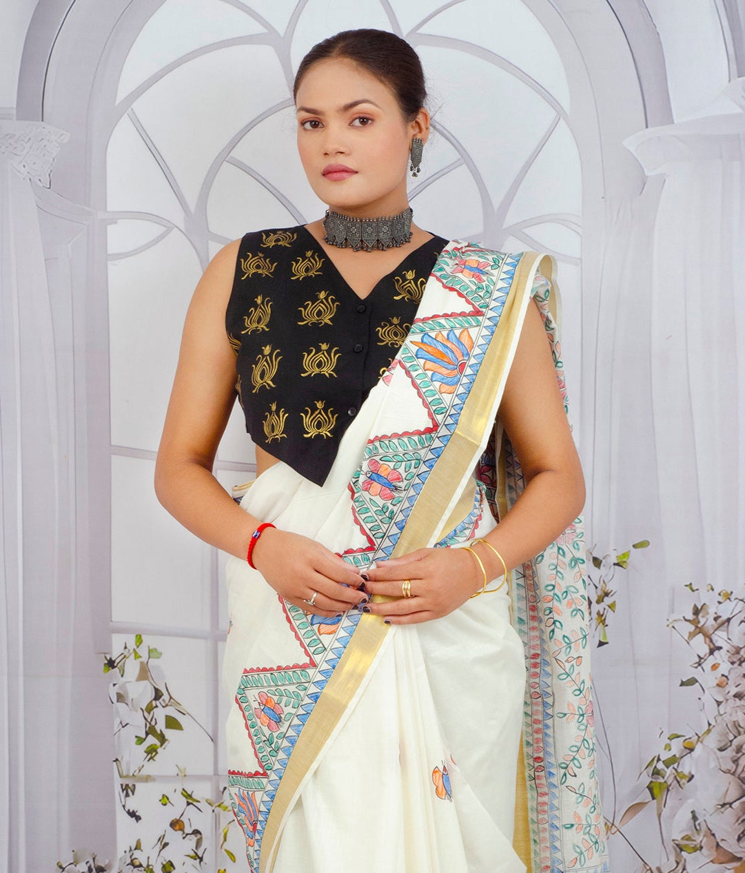 Black Madhubani Hand Painted Woman’s Cotton Waistcoat