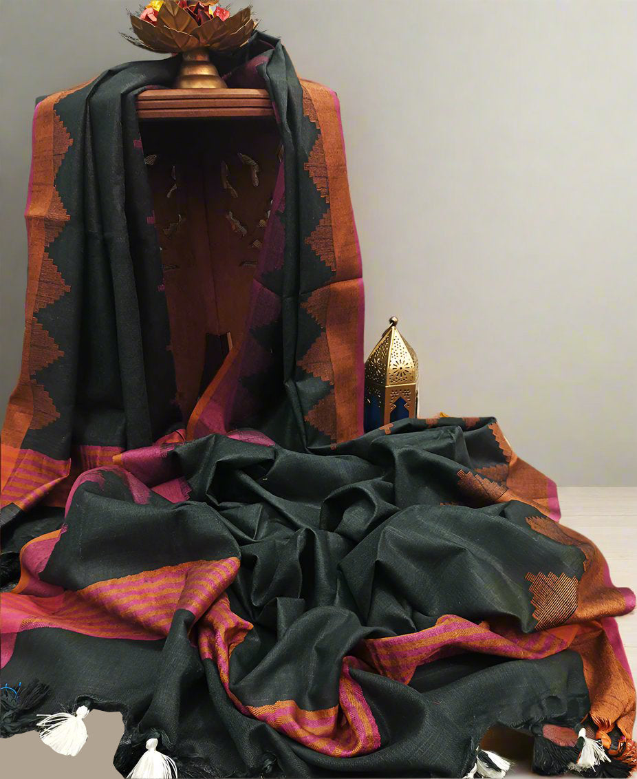 Black Temple Border Cotton Slub Dupatta