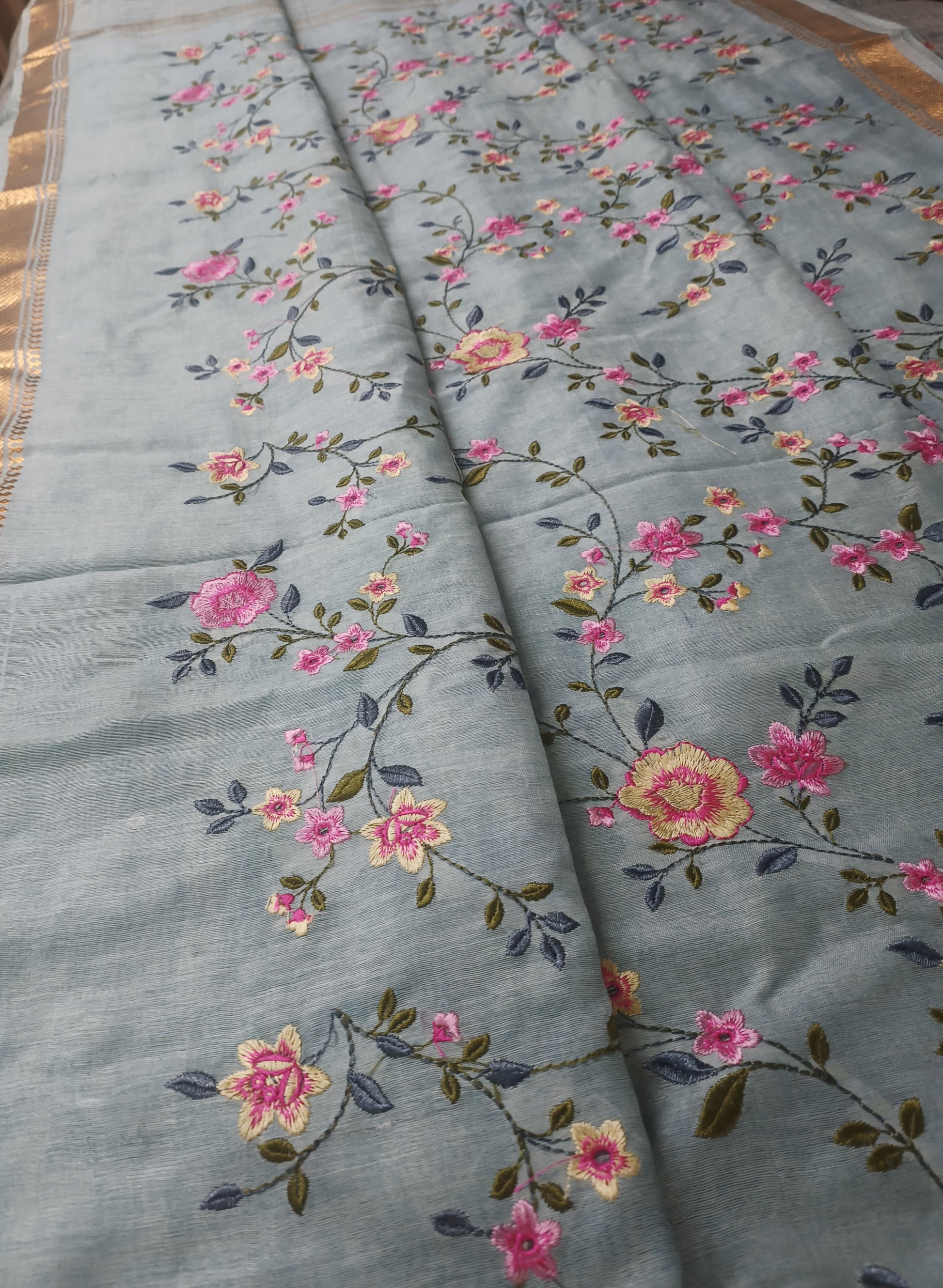 The color palette is a harmonious blend of classic and contemporary, offering a range of options to suit diverse tastes. Whether you choose a vibrant hue for a festive occasion or a subtle pastel for an understated grace, this saree effortlessly exudes sophistication. Elevate your ethnic wardrobe with the Embroidered Silk Linen Saree, a timeless ensemble that pays homage to the art of weaving and embroidery, making every moment a cherished and stylish affair.