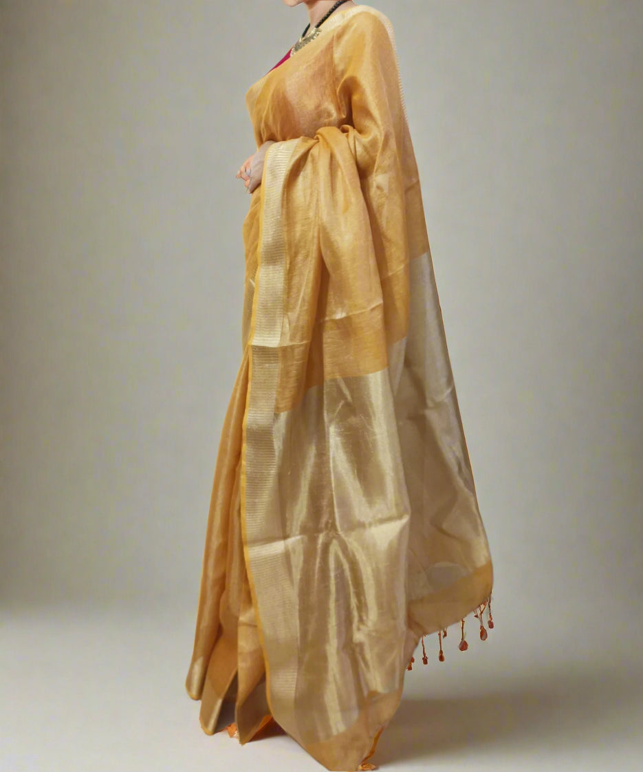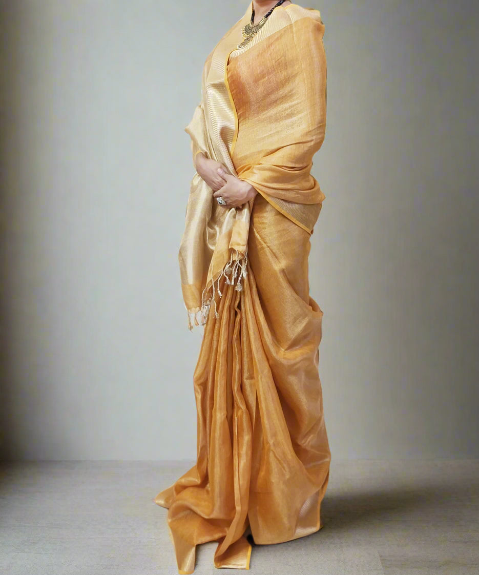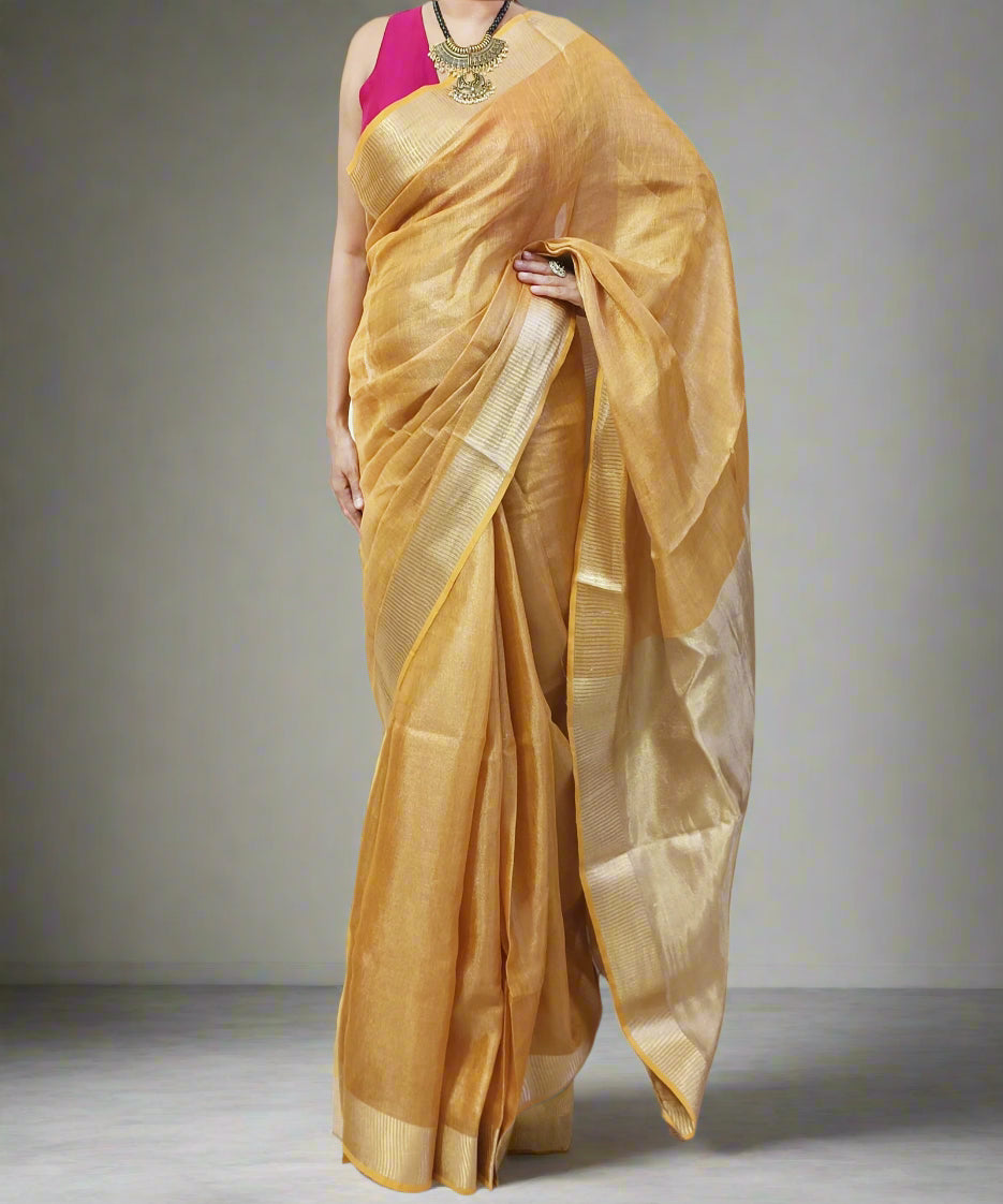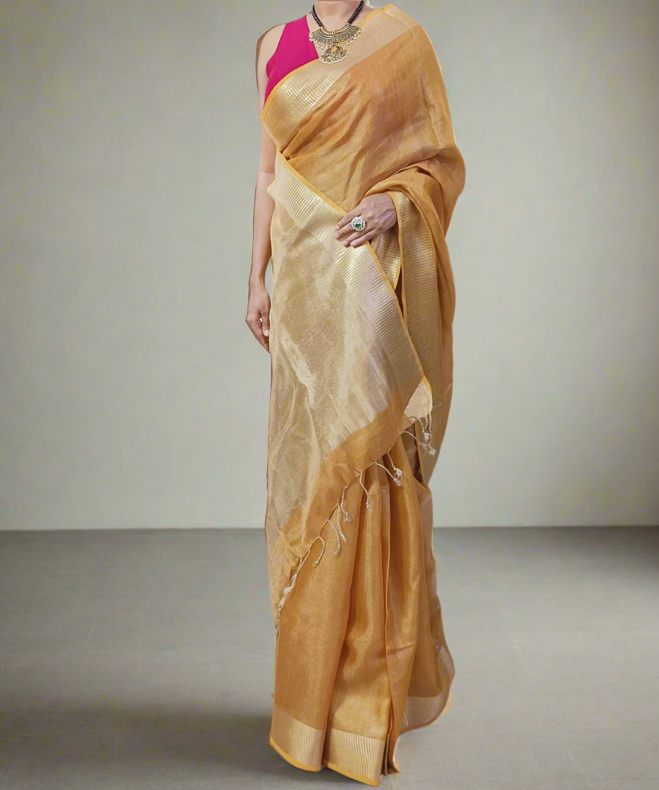Golden Brown Tissue Linen Saree