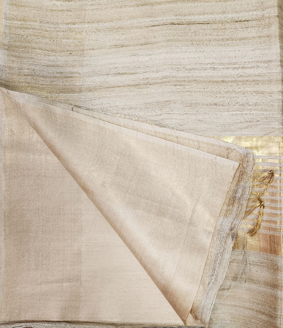 Golden-Natural Korean Tussar Ghicha Silk Saree