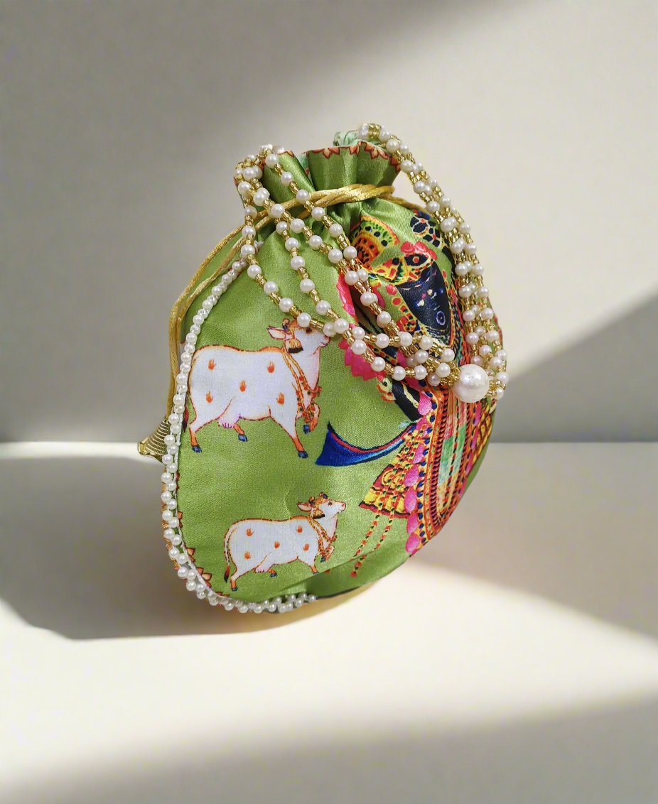 Potli Bag is a fashion accessory that one can't afford to skip. Enhanced with fine embellishments and vivid embroidered motifs, potli bags make for a must-have addition to refine your closet favourites. These potli bags are the perfect amalgamation of impeccable style and functionality. It is a great pick for festive occasions. Pair it with your ethnic wear outfit.