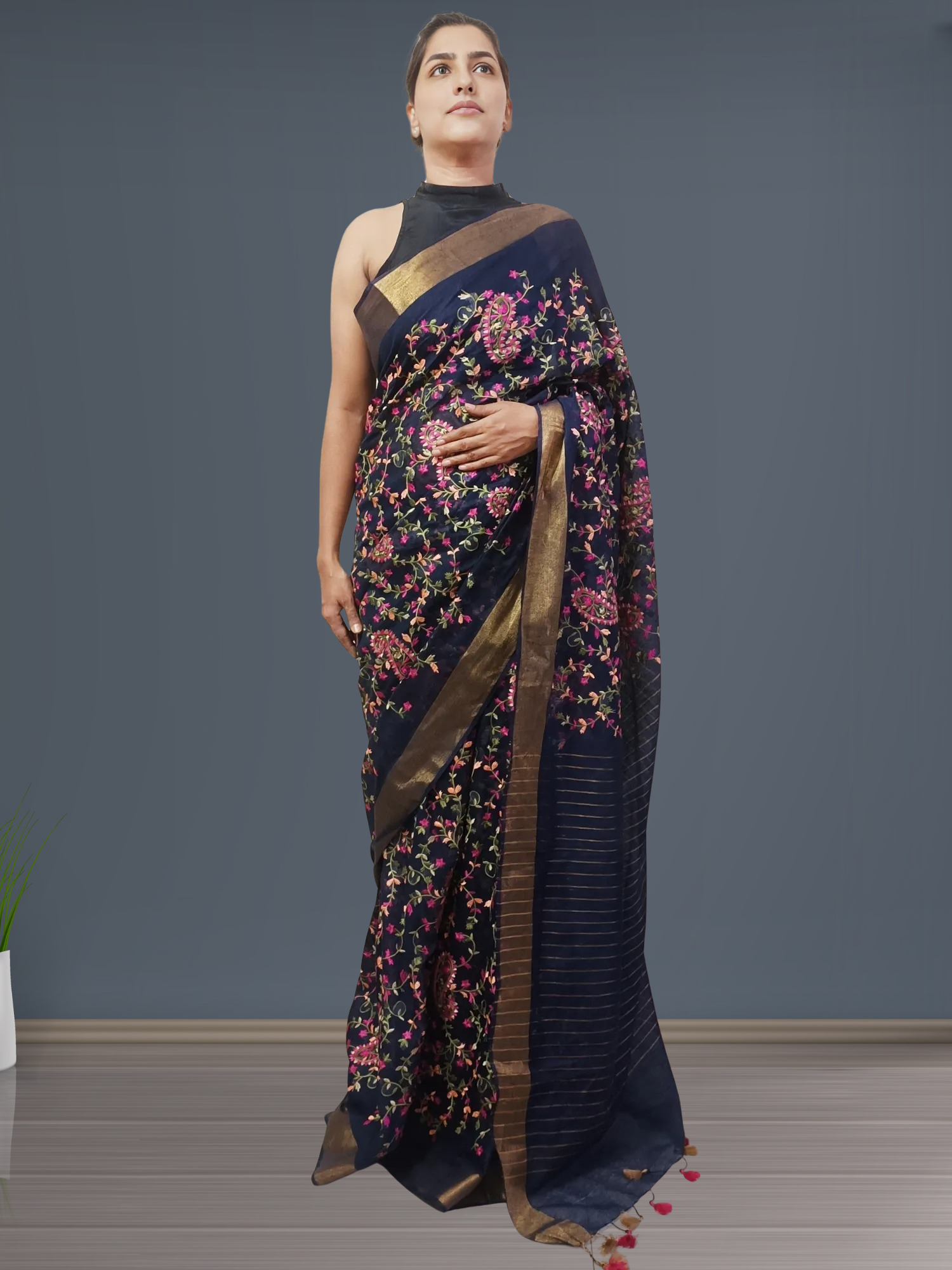 Indulge in timeless elegance with our embroidered Silk Linen Saree, a masterpiece that seamlessly combines traditional craftsmanship with contemporary allure.... Read More