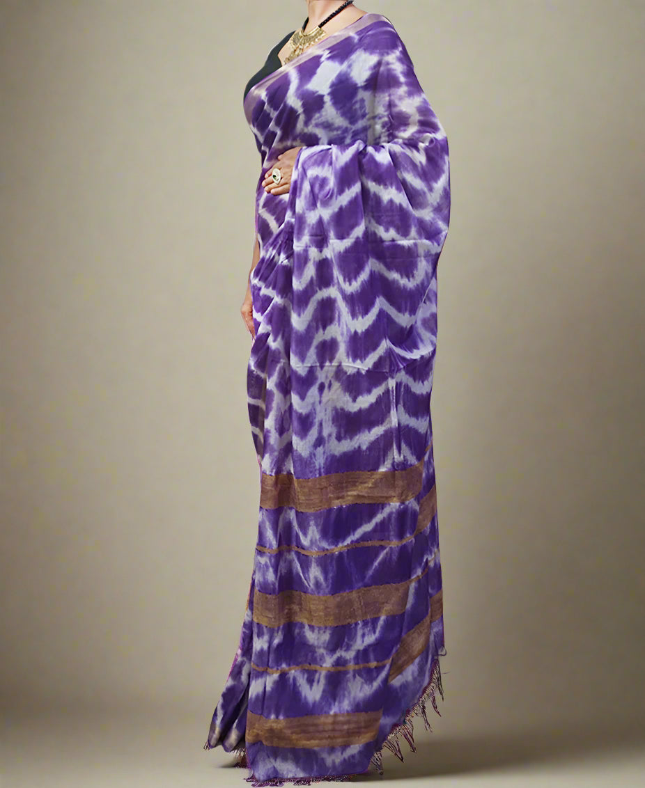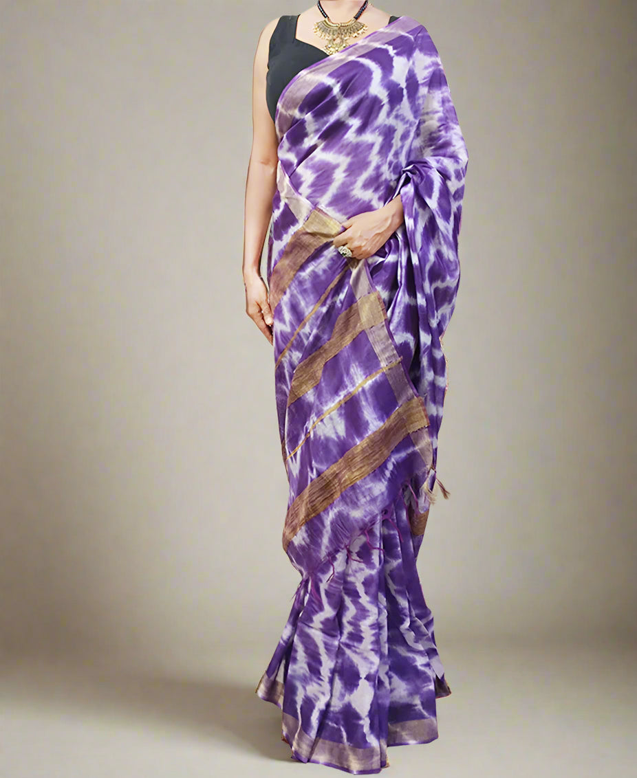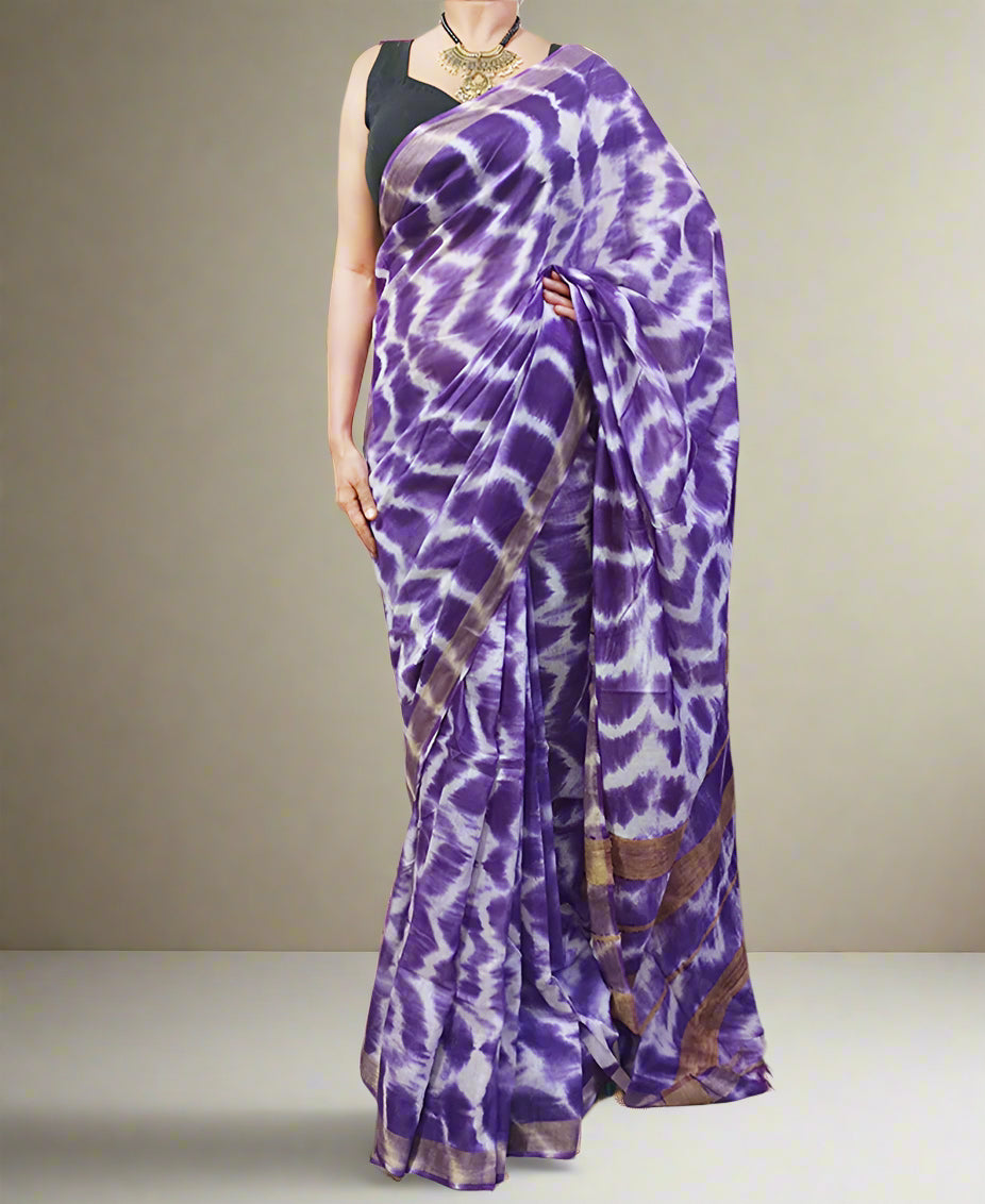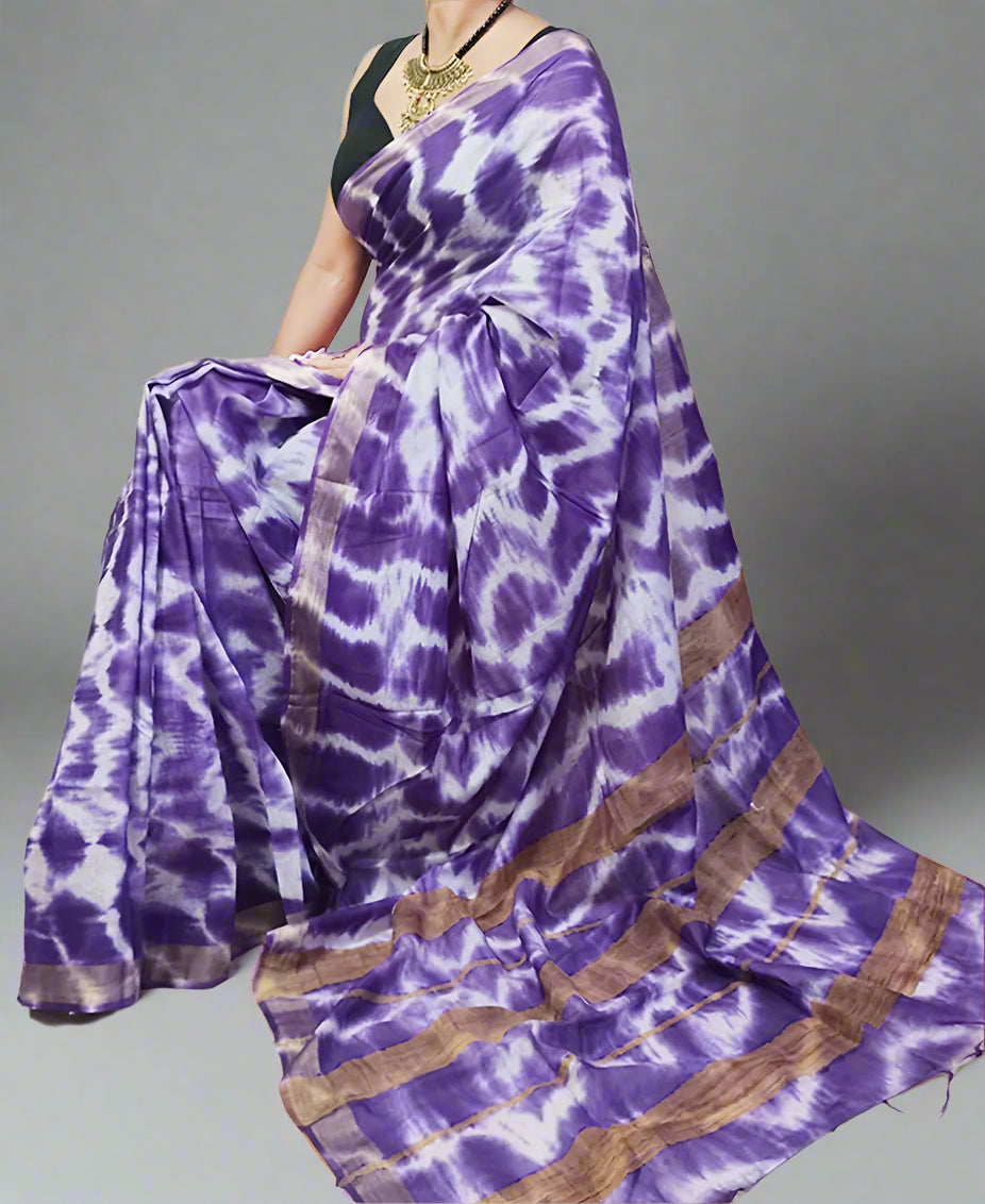 The saree features a captivating play of tie-dye patterns, creating a unique and visually stunning design. The intricate detailing showcases the skillful artistry of Indian craftsmen, making each piece a work of art. The lightweight and breathable nature of Kota silk makes this saree ideal for various occasions, ensuring both style and comfort.