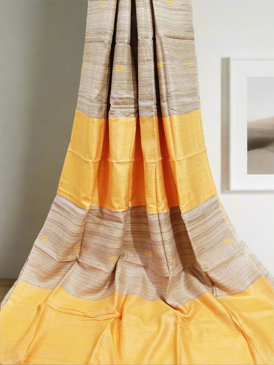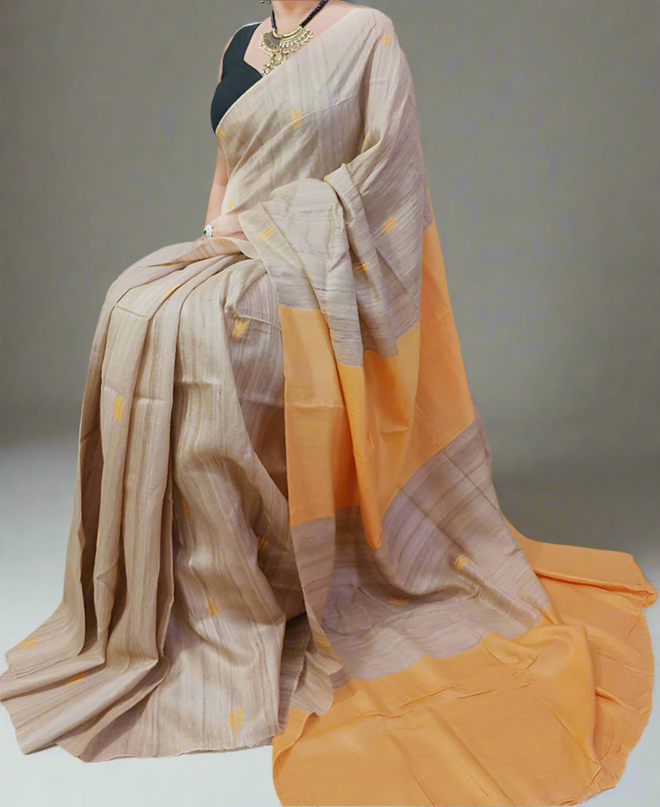 Light Orange Buta Handloom Tussar Ghicha Silk Saree