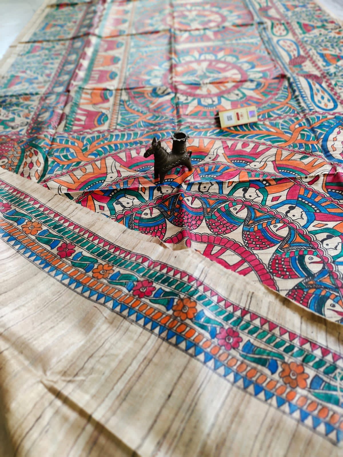 Mandala Madhubani Hand Painted Desi Tussar Silk Saree