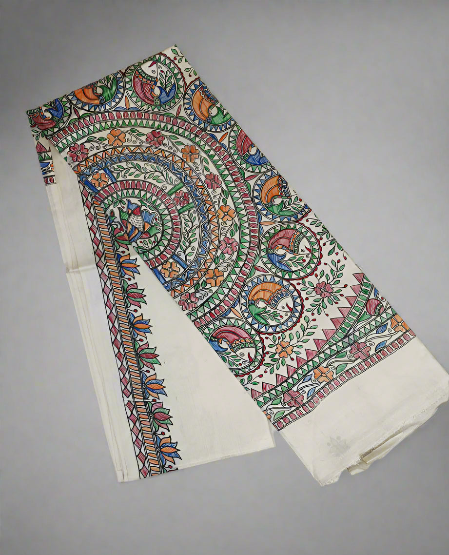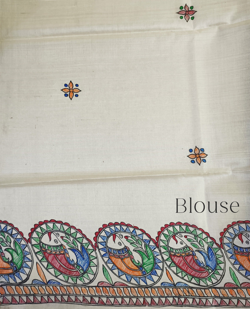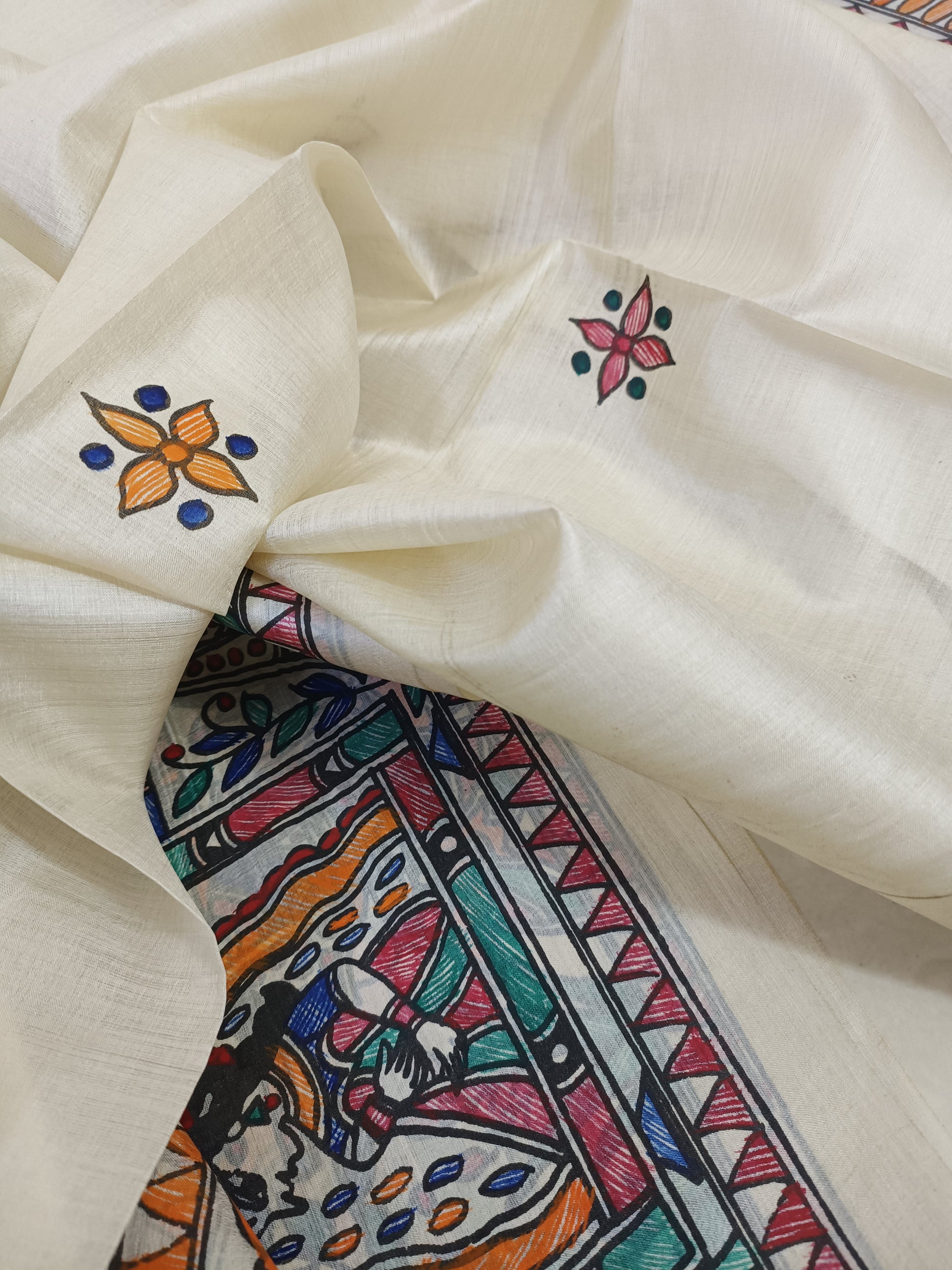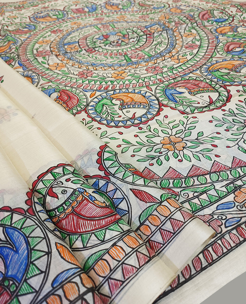 Matasya Madhubani Hand Painted Tussar Silk Saree