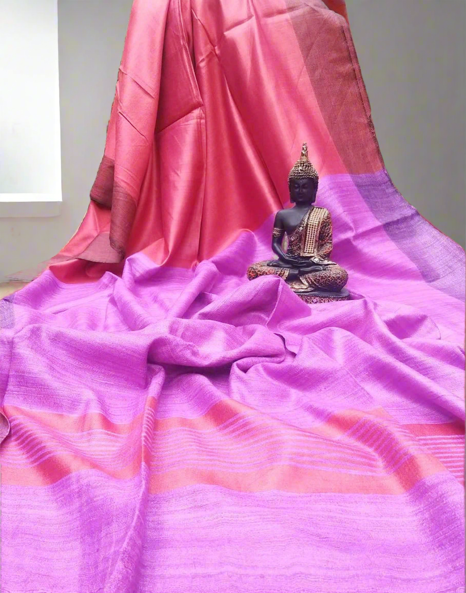 Pink and red Korean tussar ghicha pallu saree with staple body