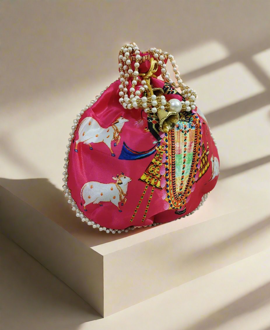 Potli Bag is a fashion accessory that one can't afford to skip. Enhanced with fine embellishments and vivid embroidered motifs, potli bags make for a must-have addition to refine your closet favourites. These potli bags are the perfect amalgamation of impeccable style and functionality. It is a great pick for festive occasions. Pair it with your ethnic wear outfit.