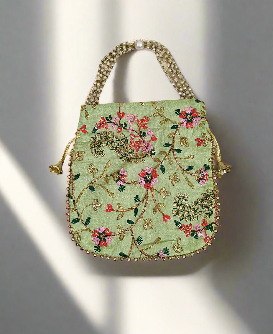 Potli Bag is a fashion accessory that one can't afford to skip. Enhanced with fine embellishments and vivid embroidered motifs, potli bags make for a must-have addition to refine your closet favourites. These potli bags are the perfect amalgamation of impeccable style and functionality. It is a great pick for festive occasions. Pair it with your ethnic wear outfit.