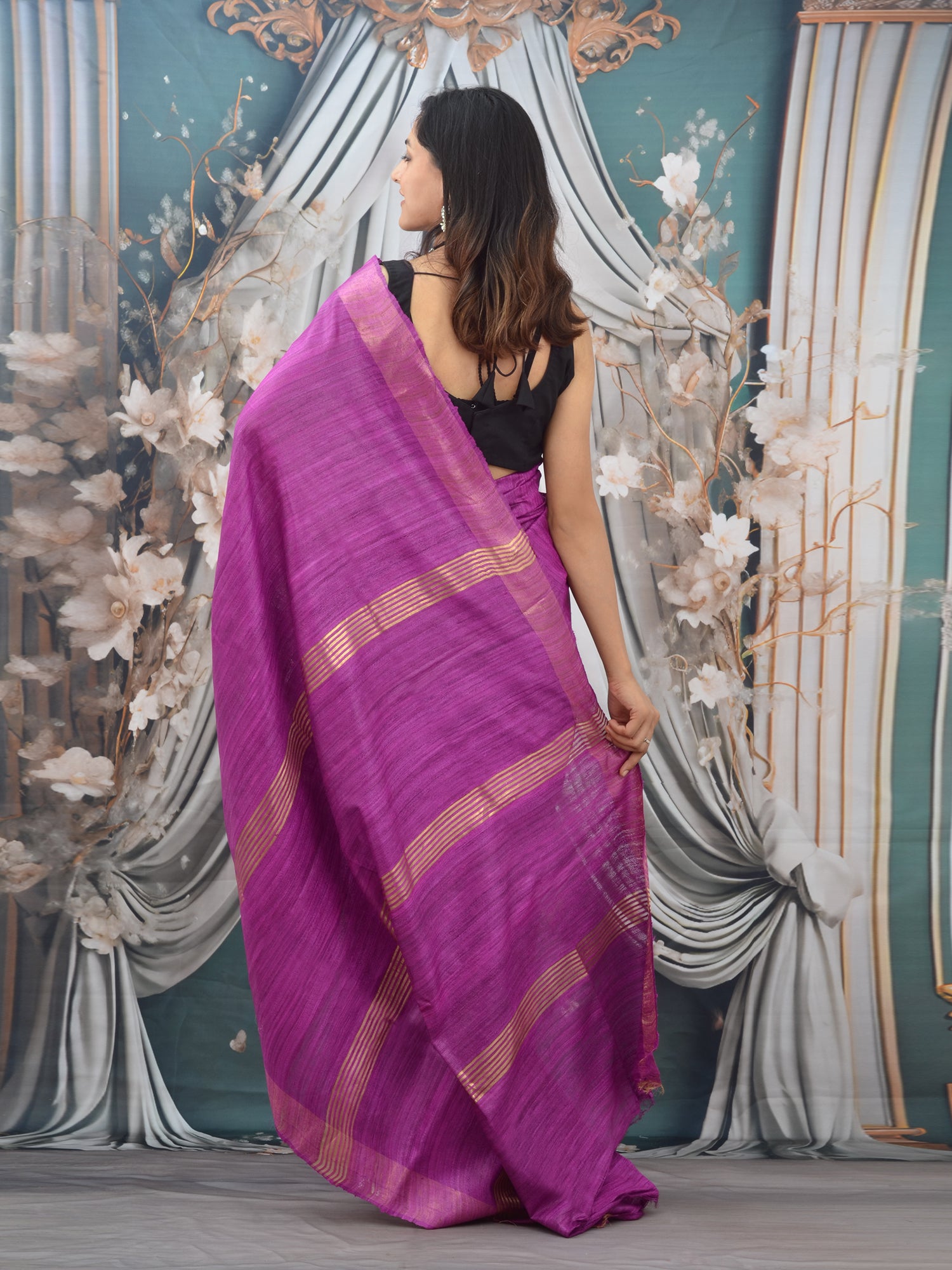 Purple Zari Border Handloon Tussar Ghicha Silk Saree