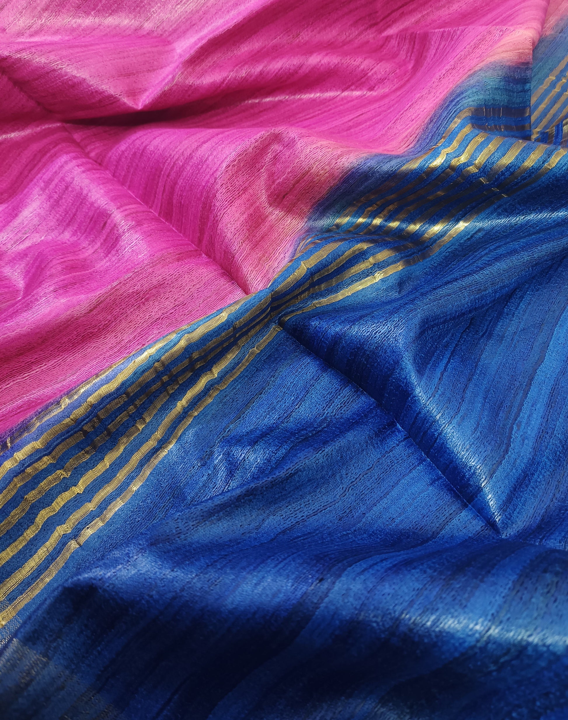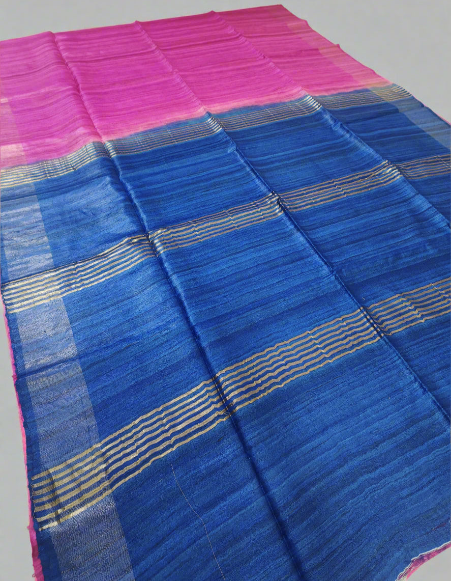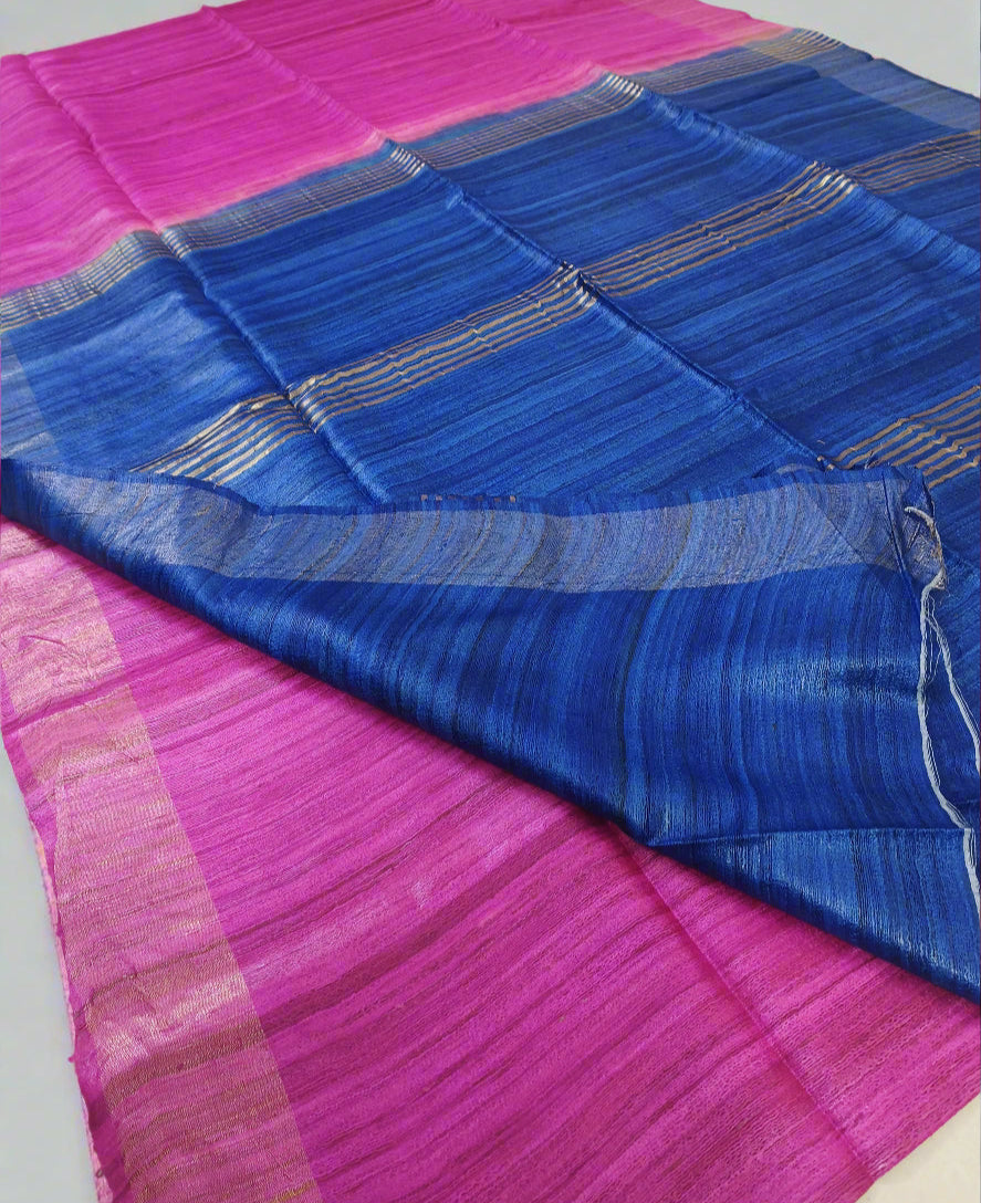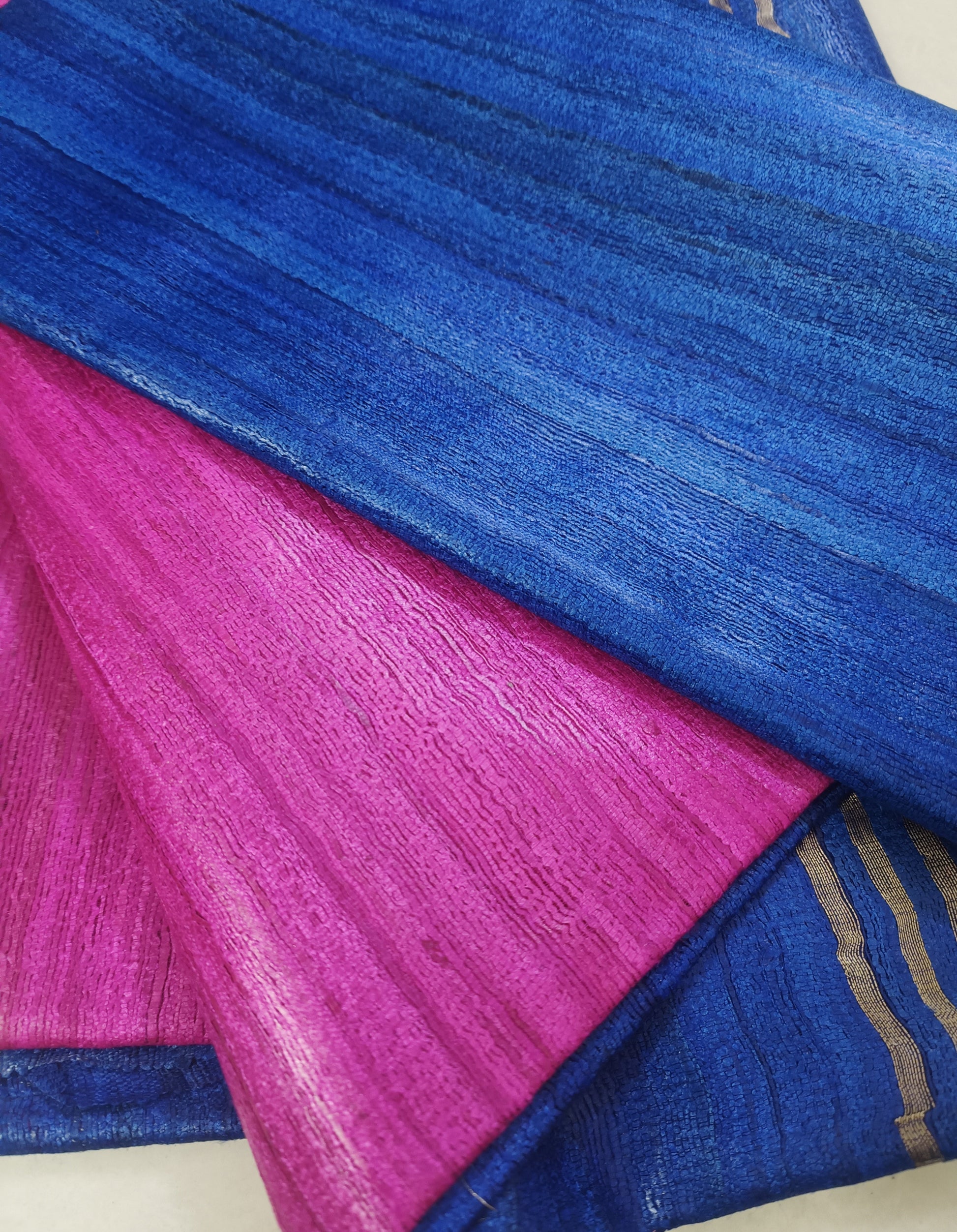 Royal Blue And Magenta Handloom Tussar Ghicha Silk Saree