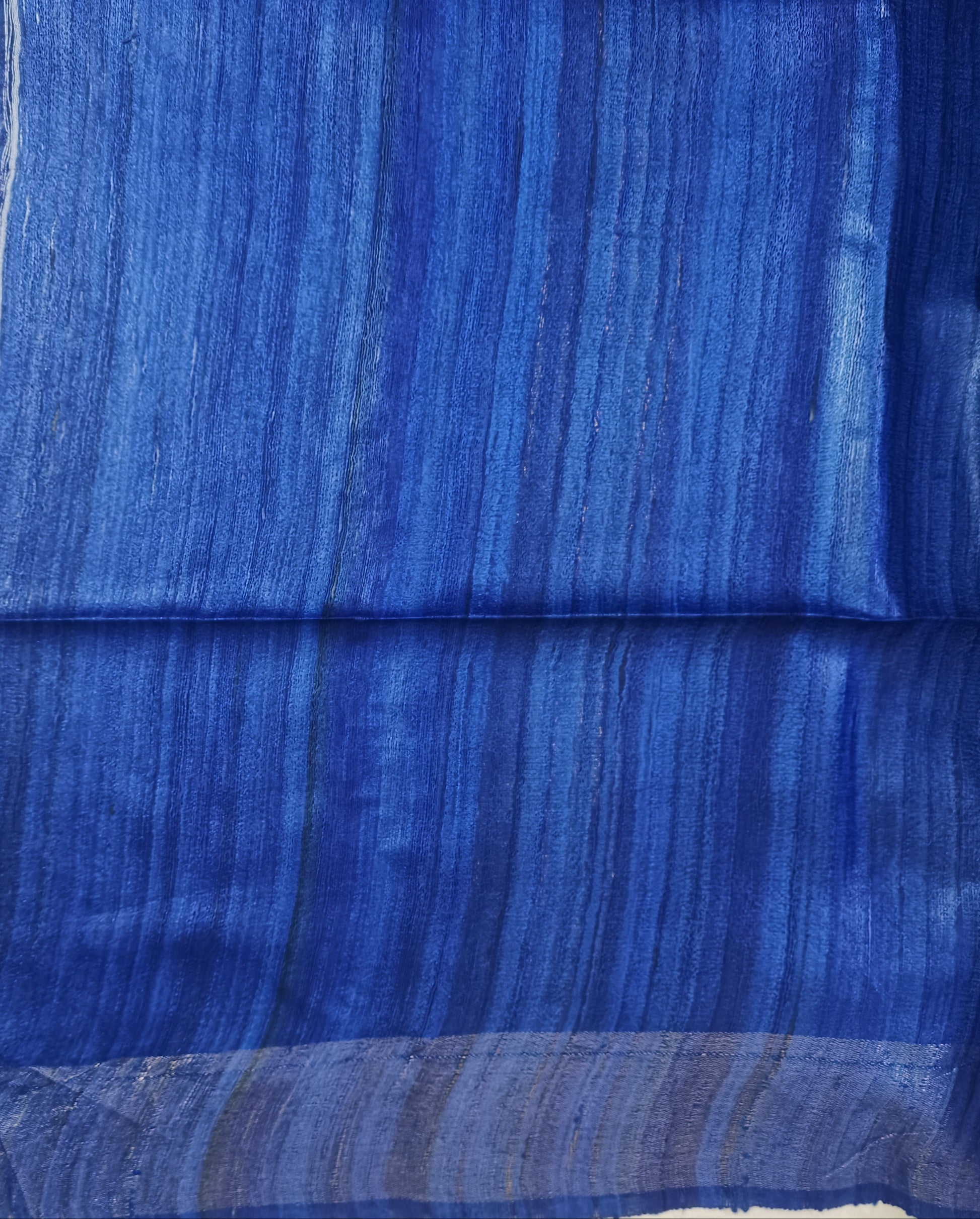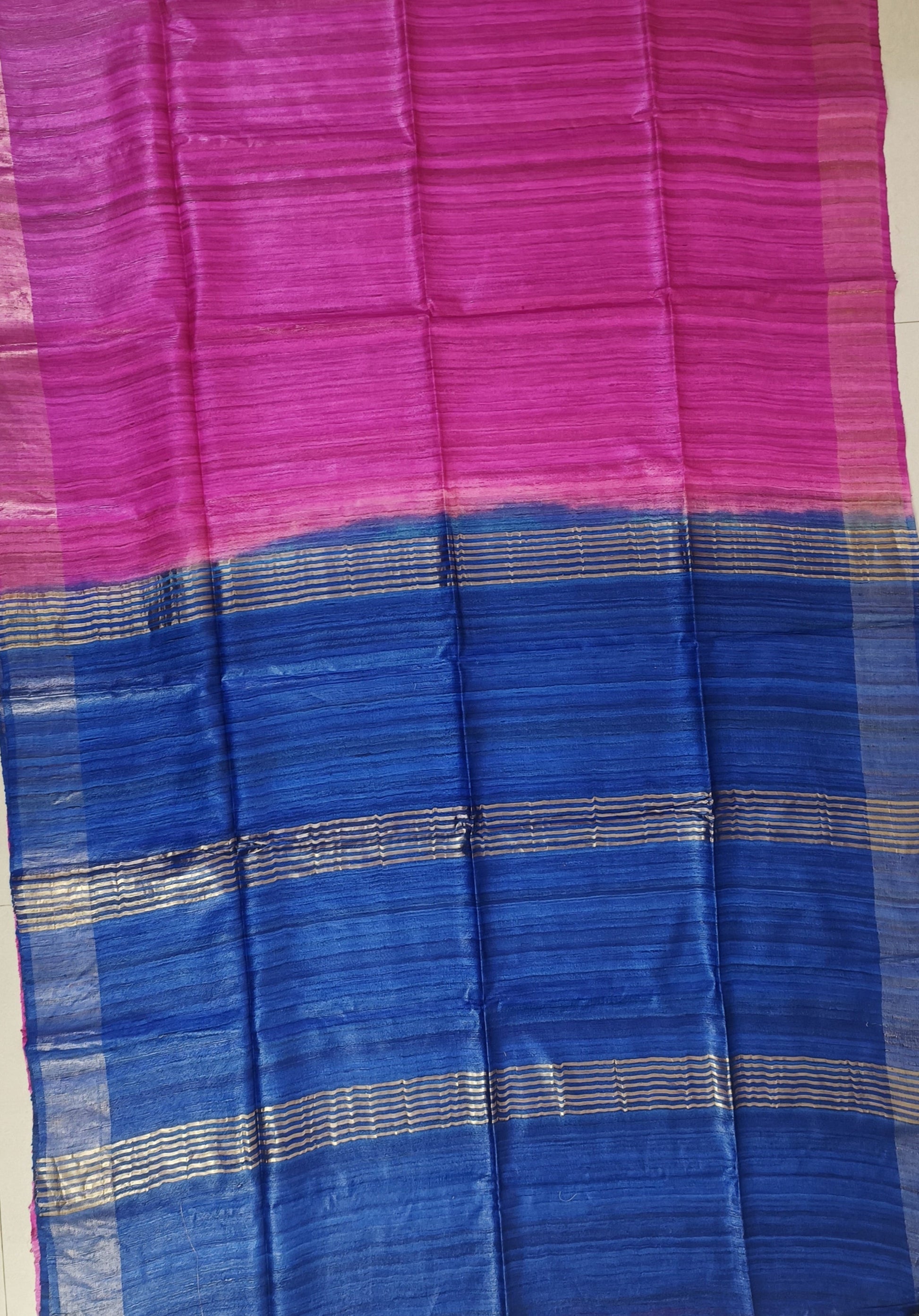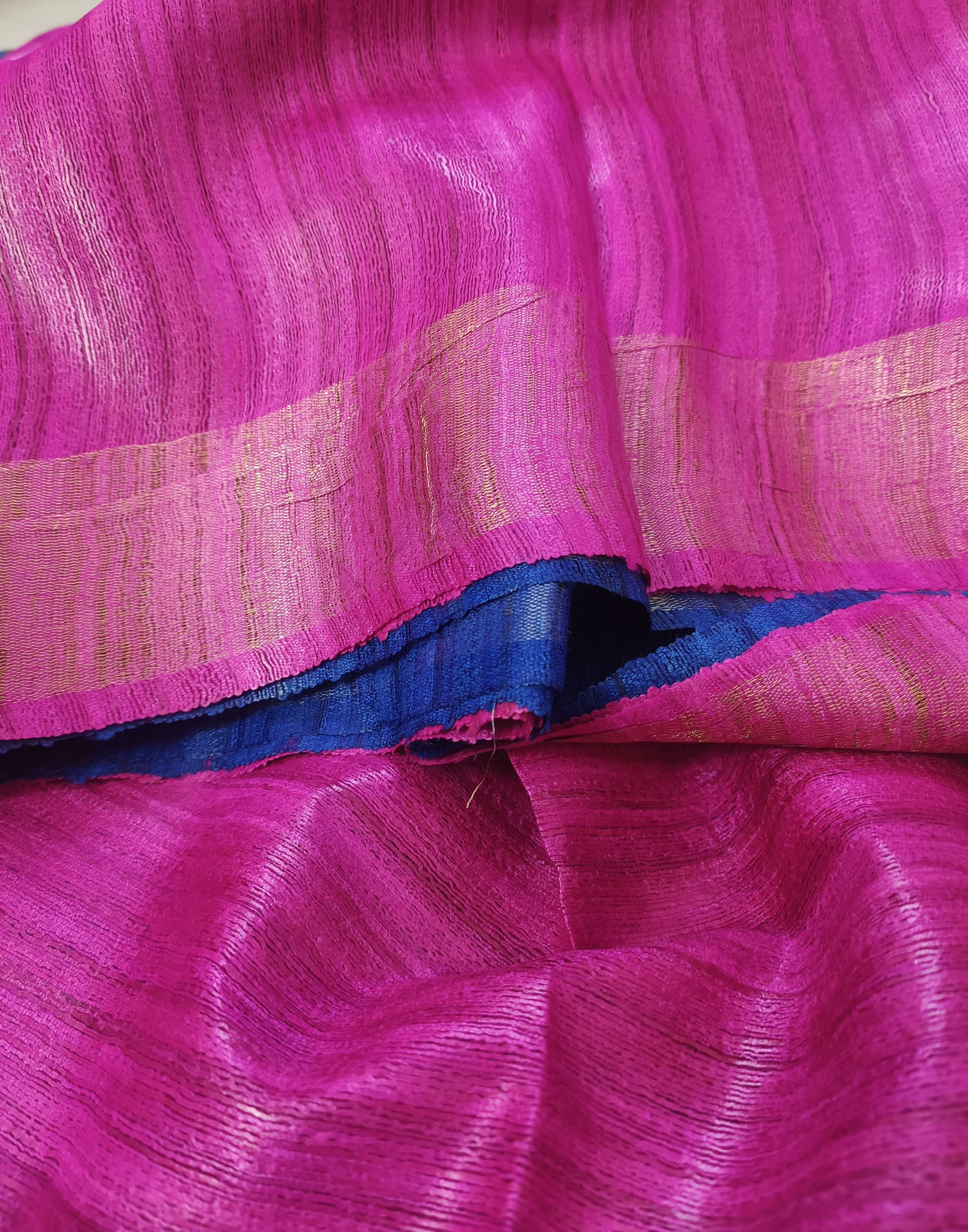 Royal Blue And Magenta Handloom Tussar Ghicha Silk Saree
