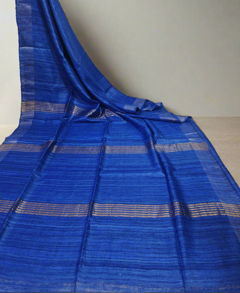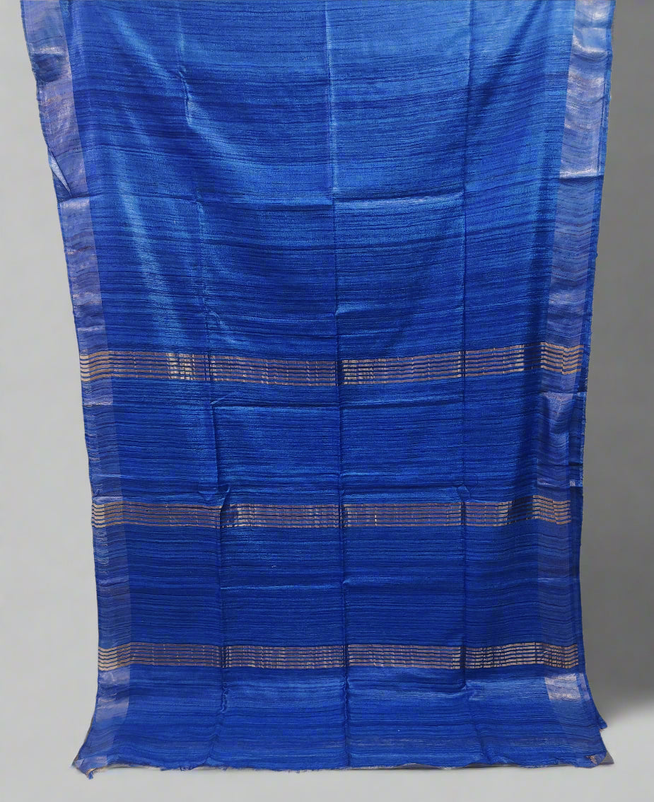Royal Blue Zari Border Handloon Tussar Ghicha Silk Saree