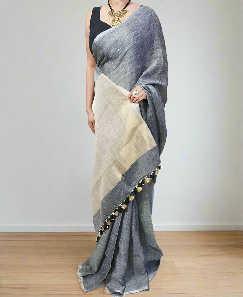 Linen sarees are known for their adaptive nature that means you can carry it anywhere you want to. Linen saree styles lend itself perfectly to both weekend and work wear! Simple and elegant, at work and at play, these sarees are universal. You simply have to get it in the right design and colour. The main advantage of shopping linen sarees online in India is that it's a very breathable material and is apt for the hot & humid temperature we have.