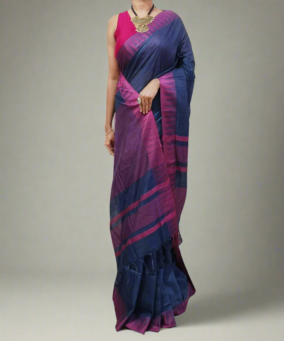 Wash & care: Dry Wash, Do Not Bleach. More DetailsStep into timeless elegance with our Temple Border Navy Blue Kota Viscose Saree. Crafted with precision, this saree exudes grace... Read More